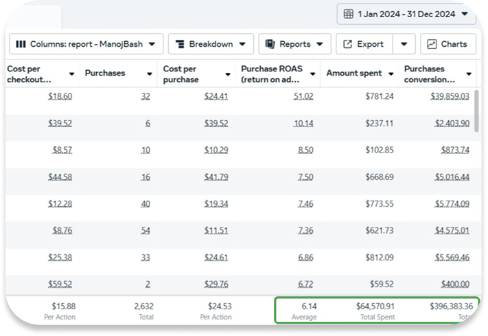 We helped this streetwear brand generate $396,383.36 in sales with in 12 months, while spending only $64,570.91, achieving a 6.14X ROAS. We identified winning creatives, scaled the best-performing ads, and optimized the website for higher conversions. A simple, strategic approach delivered great results.