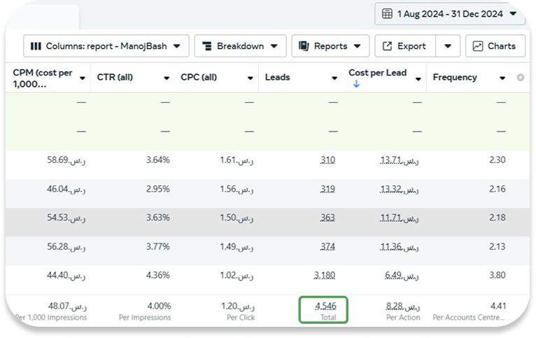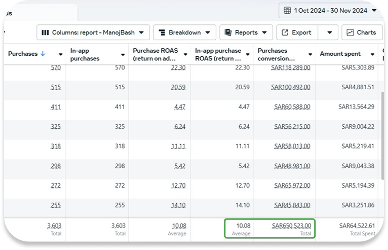 We scaled a MENA-based app to SAR 650,523 in revenue from SAR 64,522 in ad spend at 10.08X ROAS.